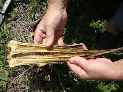 Diagnóstico de nematóide de galha nas raizes de mamoeiro com cerca de dois anos, cultivado em solo arenoso - Em Seropédica. Para quem não sabe, o nematóide é um verme que está alojado dentro desta tumoração. Reparem várias galhas nas raízes mais finas.